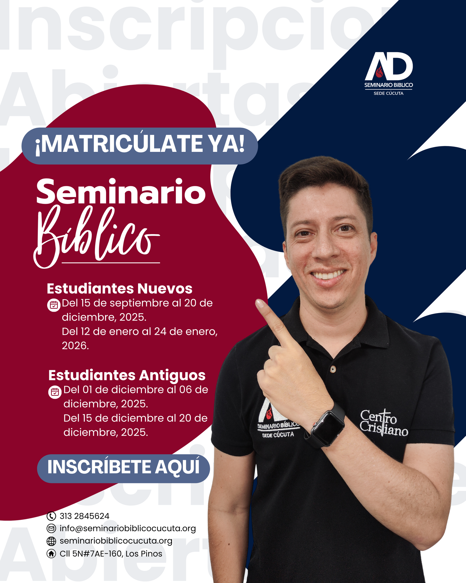 El SEMINARIO BÍBLICO AD sede Cucuta se entiende como institución al servicio de la comunidad cristiana, ofreciendo formación teológica y ministerial a quienes comparten nuestro fundamento cristocéntrico y pentecostal y anhelan ejercer un ministerio que influya en su entorno y la sociedad. Hacemos parte de la Pastoral de Educación del Concilio de las Asambleas de Dios en Colombia del cual recibimos la cobertura denominacional. Apreciamos también de manera muy especial la vinculación eclesiástica a la Iglesia Centro Cristiano y su ministerio como plataforma misionera.